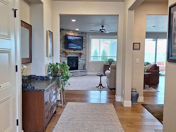 This well-designed, single-level, 3-br, 2-ba home is on a 1/3 corner acre parcel convenient to all community amenities. This upgraded and customized home has it all! Enter into a wide entry leading to an open floor plan, with a split bedroom design for privacy. The highlights are a 3-door slider, fireplace with hearth, custom cabinets, upgraded tile, upgraded appliances, an oversized pantry, and more. The owners added custom closets in the Master & 2nd bedroom, and "dual-zone" heating to create comfort for all. The flex room off the living room can be used as an office or dining room. Step out on the back patio to a haven with a stunning fountain, gazebo, trees, garden, and a covered patio. It's peaceful, relaxing, and a delightful place to entertain. The large side yard includes an RV pad, a 12 x 14 storage shed, and room for more. The garage has 4 extra ft. in depth, custom storage cabinets, and a Polyurea floor coating. Convenient location to downtown Middleton, schools, and I-84.