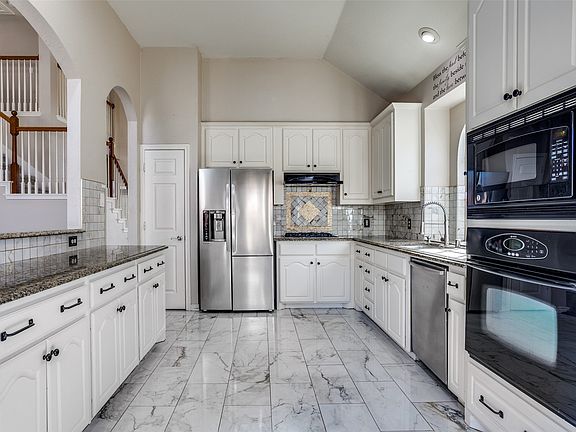 Nestled in Village at Panther Creek, this move-in ready home combines everyday comfort with timeless style and a backyard meant for gathering. A charming brick exterior opens to a bright, open-concept interior where high ceilings, abundant natural light and hand-scraped hardwood floors set the tone for relaxed living. The spacious family room centers around a cozy gas fireplace and flows seamlessly into the kitchen and breakfast area — creating an ideal space for connection. Granite countertops, a stone backsplash, stainless steel appliances, gas cooktop and microwave replaced in 2020 offer both function and warmth, while nearby dining and living areas provide flexibility for entertaining or quiet evenings in. The primary suite on the main floor includes a sitting area and en-suite bathroom with dual sinks, garden tub and separate shower. The downstairs bedroom can be a guest room or study — making it a versatile layout. Upstairs, a game room anchors three secondary bedrooms perfect for family or visiting friends. The thoughtfully designed backyard creates an additional entertaining space, featuring an extended patio with an outdoor fireplace and attached grill, all surrounded by an 8 ft board-on-board privacy fence for easy weekend gatherings. Recent updates include two new AC units replaced in 2024, a new water heater in 2020, and a new roof, gutters and window screens all replaced in 2024. Enjoy a lifestyle surrounded by neighborhood amenities including parks, trails, and the community pool, all within top-rated Frisco ISD schools. A blend of comfort, connection, and convenience, this home captures the best of Frisco living.