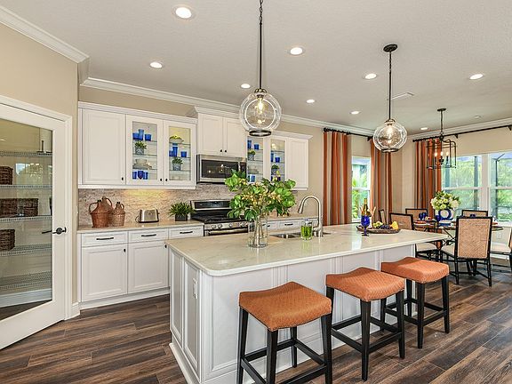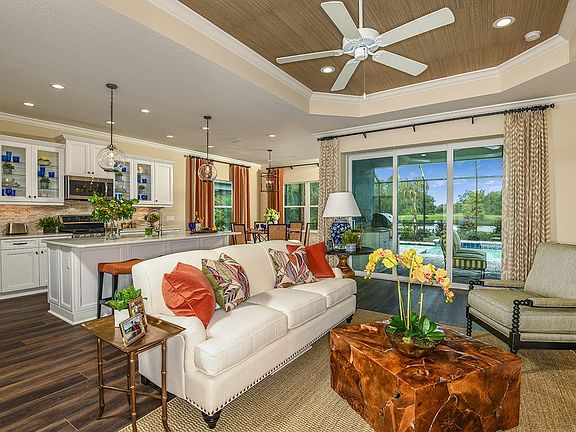 This Neal Communities home has an elegant and comfortable design.. The open main living area includes a great room, kitchen and dining room area. In the kitchen you'll find an island and walk-in pantry. Sliding glass doors in the great room, which features an optional coffered ceiling, open to the covered lanai, where you can relax and enjoy views of your backyard. The luxurious master bedroom includes a sitting area and optional coffered ceiling. The master suite also holds two walk-in closets and a bathroom with walk-in shower, optional double sinks and private water closet. One of the two secondary bedrooms include one designed as a guest suite with private bath. The home also includes a leisure room that can be transformed into a den with French doors.Find out more about Silverleaf in Parrish and our beautiful homes. Call today to schedule an appointment to learn more and tour the model homes.