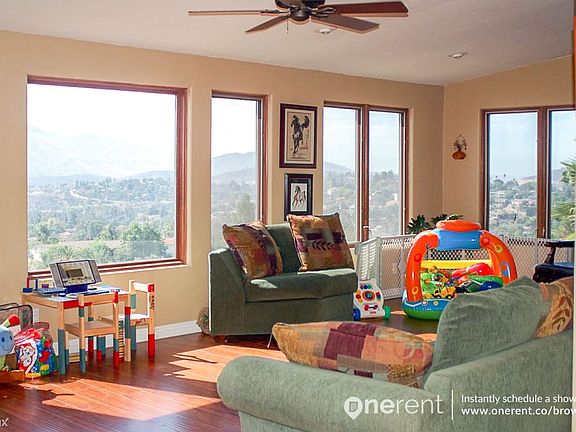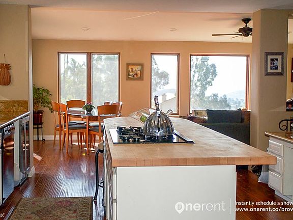 Upscale 4 bedroom, 3 bathroom, 3100 square foot home on a 1/3 acre lot that has a gated courtyard entry and a flat pad that has room for your RV, boat, or semi-truck. The perfect home for entertaining with a bonus room which includes a custom pool table there is also a 300 square foot separate entry room and shower, a beautiful 320 square foot redwood deck, and private hot tub. The living room has a bar area, rich hardwood floors, and inspiring mountain views from the double paned windows. The gourmet kitchen boasts a center island with cooktop and seating, pantry cupboards, recessed lighting, and a refrigerator, double oven, dishwasher, and microwave. The master bedroom has a walk-in closet and an attached master bath. This home has a basement, too. Forced air heat, central air conditioning, and ceiling fans so you'll always be comfortable. Enjoy the luxury of an indoor and outdoor spa. Also enjoy beautiful view and being situated on Mt Helix. The washer and dryer are included. Parking is in the attached 2-car garage and on the street. Pets allowed. The landlord pays sewage. Tenant is responsible for electric, water, garbage, landscaping, and gas. Near Albertsons, Starbucks,Eucalyptus Park. Also enjoy the benefit of being locating in La Mesa with great school districts and easy access to San Diego State University. (RLNE2755068)