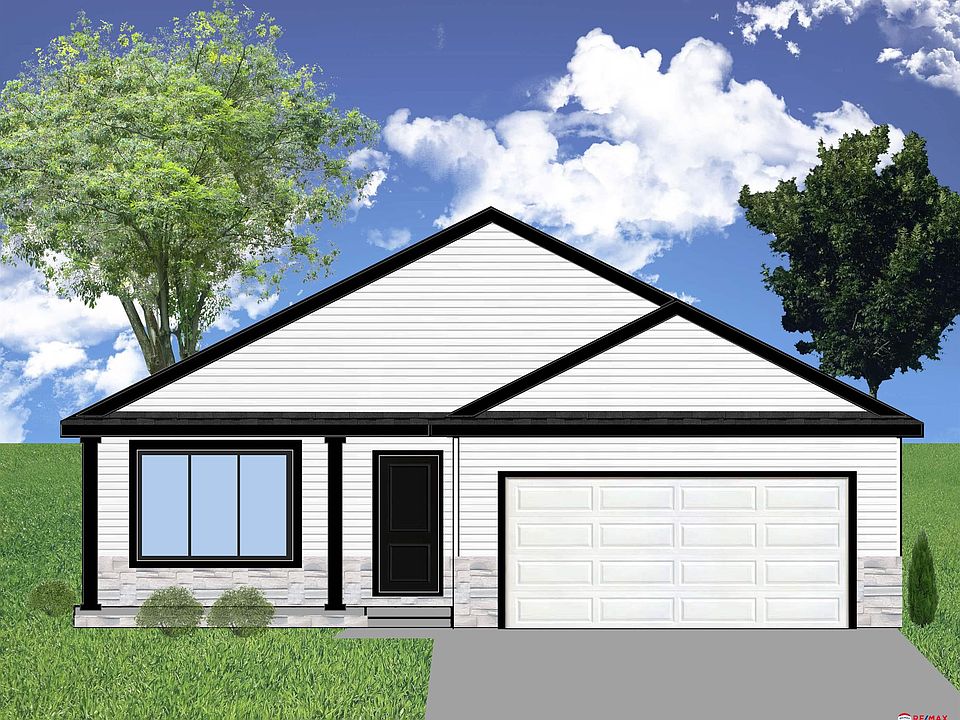 Remington Homes Otoe plan is under construction in Grandview Estates. This three-bedroom, two-bathroom ranch plan is just over 1,400 square-feet of finish on the main level. Walk inside to vaulted ceilings in an open-concept living room. White painted trim and doors carry throughout the whole house, and the kitchen will be finished with quartz countertops, pendant lighting, and subway tile backsplash. The primary bedroom includes a 3/4 bath with double sinks and a walk-in closet. The main level also includes laundry in the mud room, full hallway bathroom, and two additional bedrooms. This home is priced for an unfinished basement, but ask the builder about cost to finish it prior to closing! Home includes sod and underground sprinklers.