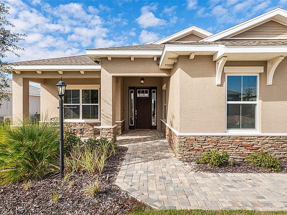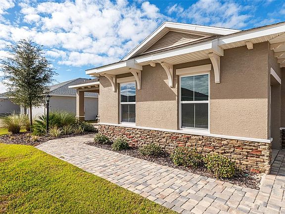 Beautiful, Southeastern, front exposure, extended, 2023 Magnolia model in the Long Leaf Phase V area of On Top of the world. The home features a large master bedroom and a second en-suite bedroom and a half, hallway bathroom, open floor plan with 2 and ½ golf cart garage. The gourmet kitchen boasts quartz countertops and built-in oven and microwave, stainless steel appliances. Upgrades throughout include tray ceilings, enclosed lanai that is part of the heated area. Curbside trash service is also included. Enjoy a prime location near the new Summit Clubhouse (currently under construction), The Arbors, and the Recreation Center. There’s always something to do at On Top of the World—from swimming, clubs, and pickleball to mini golf and dog parks. Located in Ocala’s premier 55+ golf cart community, residents enjoy access to two shopping centers by golf cart.