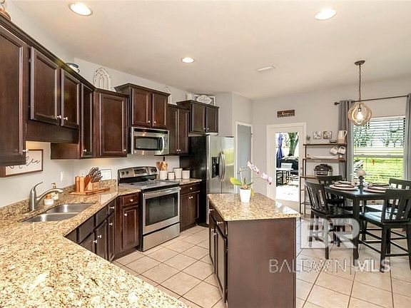 **Open House Sunday June 2nd, 2 to 4 pm.** CUTE and CLEAN! Not only is this precious home cute and clean, but it's also comfortable and functional. Located in Daphne's Dunmore neighborhood, this 3 bedroom, 2 bathroom home begins in the family room, where the vaulted ceiling really enhances the open layout and creates an inviting atmosphere for gatherings. Overlooking the space is the breakfast bar and kitchen featuring granite countertops, a center island, stainless steel appliances, a pantry, and ample cabinet space. There's a great dining area with a door to the large back deck, perfect for unwinding after a long day. The primary bedroom is a beautiful retreat towards the back of the home, with a custom barn door leading to your ensuite bath. You'll enjoy the separate garden tub and shower, along with dual sinks, and a walk-in closet. Two guest bedrooms share a well-appointed hall bathroom. Don't miss your chance to see this one! All updates per the seller. Listing company makes no representation as to accuracy of square footage; buyer to verify.