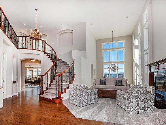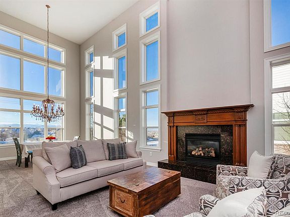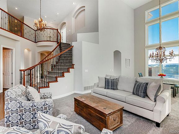 This beautiful home in Estates at Carriage Club allows for the perfect work-life balance, especially now while most of our time is being spent at home. With over 6,200 finished square feet, 6 bedrooms, 5 bathrooms, dual studies, and a large loft area with built-in desk, working and schooling from home has never been so easy! The open-concept living room, eat-in kitchen, and enormous kitchen is the perfect gathering space. The custom kitchen boasts two oversized granite islands, Thermador and Wolf appliances, a breakfast nook with built-in seating, beverage station and counter space galore. The western facing wall of windows allows for natural sunlight to fill this entire home and giving breathtaking mountain view's from every angle. The large main suite is the perfect oasis. With a coved ceiling, electric fire-place, cedar-lined closets, dual vanities, large windows and a private deck over looking the mountains is the perfect spot to enjoy your morning coffee. The finished walk-out basement includes a full bar, gym, steam room, game room (with a stage for karaoke), and theater (or bedroom), allows for the life balance we are all craving. Stepping out onto a stamped concrete covered patio you are greeted with a brick wood-burning fireplace draped with café lights perfect for a cozy night stargazing or s'more fun in the summer! The separate up-stairs Trex patio, allows for a nice dinner while watching the sunset. This house is truly an entertainer's dream, but while entertaining is on hold this home also allows your family to stay close-knit while giving the personal space when needed. Breath-taking panoramic mountain views, backing up to preserved green space, 253-acre Bluffs Regional Park, neighborhood parks, and miles of hiking trails, this home embodies the Colorado lifestyle. This luxury custom home is filled to the brim with thoughtful upgrades and life easing features, that you'll just have to come to see for yourself. Call for a private tour today!