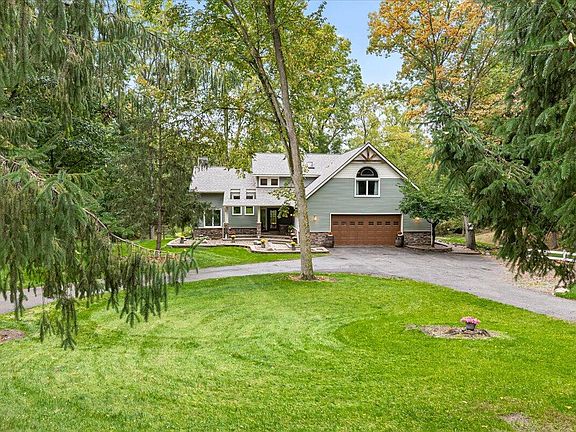 A stunning custom built 4 bedroom, 4 bath home just minutes from downtown Chelsea. Sitting on over 4.5 acres with a pond, waterfall, and mature trees. This sprawling two-story home with plenty of natural light streaming through large windows and skylights will amaze as soon as you enter the foyer. Soaring ceiling, beautiful stonework and four fireplaces (one double sided between the dining room and kitchen). A gorgeous gourmet kitchen for you to prepare a feast for family and friends. The spacious private master suite includes a generous walk-in closet, fireplace in the bedroom and large bath with walk-in shower. A home office on the main floor is perfect for those work from home days. The walkout lower level is fully finished and includes a large family room, fireplace, work-out area, newly completed bedroom and half-bath. Throughout the home you find generous storage options including the 3.5 car attached garage. Outside you will enjoy a serene setting on the expansive deck. Trails through the wooded portion of the property lead to your own private camping site. Located near some of Southeast Michigan's best outdoor activities; Pinckney and Waterloo State Recreation areas, Border to Border Trailhead and DTE Energy Foundation Trails. A short drive brings you to the quaint and picturesque community of Chelsea with great dining and entertainment choices. Schedule your showing today!