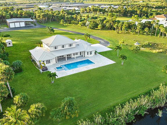 Looking for a home that embodies both luxury and tranquility? You've found it! Nestled on a serene 5-acre lot, this exquisite 5-bedroom, 6-bathroom estate--complete with a dedicated office space--offers the perfect balance of sophistication and privacy. With 5,218 sq ft of meticulously crafted living space and a desirable split floor plan, this 2016 CBS home promises comfort and functionality.Designed with both style and security in mind, the home features impact glass throughout, spacious ensuite bathrooms with walk-in closets in every bedroom, and a sparkling heated pool alongside an expansive outdoor patio--perfect for relaxation or entertaining guests!Upon entering, you're welcomed by a generous living and dining area, complemented by a front-facing office that showcases! beautiful views of the property. The kitchen is any chef's dream, equipped with stainless steel appliances, a gas-range stove, and custom wood cabinetry.