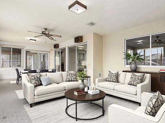 Discover the perfect blend of comfort and convenience in this move in ready 2 bedroom 2 bathroom home located in the highly desired Sun City active adult community. Enjoy the savings of OWNED solar and the versatility of two spacious living rooms ideal for entertaining or relaxing. The bright Arizona Room and covered screened in back patio create wonderful spaces to enjoy Arizona's weather all year long. Low maintenance desert landscaping in both front and backyard means more time to enjoy the community amenities.This home also includes a 2 car garage plus utility room with washer and dryer!