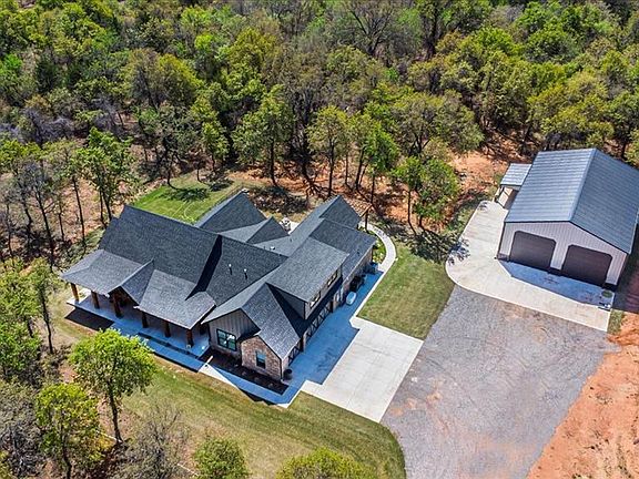 Amazing custom home sitting on 5 acres on the south side of Blanchard! This home has it all! The moment you walk in you will see all the custom upgrades and features this home boasts! The living room boasts cathedral ceilings with a beautiful masonry fireplace and huge windows to let in natural lighting. The kitchen has more cabinets and counter space than you could imagine. The center island is great for a quick meal. Teh kitchen also boasts a pot filler, wine refrigerator, and massive pantry! The living room has a custom ceiling fan and the kitchen and dining room have beautifully upgraded light fixtures. The master suite is one of a kind! The master room has an upgraded ceiling fan with cathedral ceilings. The master bath has a shower area that could be considered a room itself with multiple shower heads and a lovely bathtub. The master closet has tons of built in dressers with a place to store clothes and shoes! The secondary rooms have a jack and jill set up. The bonus room upstairs is a large room great for entertaining, movies, or just for the kids! The garage even has many cabinets to store things. The home features foam insulation inside the attic on the decking to keep your energy costs low year-round! The utility room features tons of cabinets and counters. Outside there is a massive shop great for storing an RV or boat. The shop also has a large office great for working at home! The back porch has a large covered area great for hosting friends or just relaxing. The wooded trees in the area will create a relaxing environment. This home has so many features you wont want to miss out on! Schedule a showing today!
