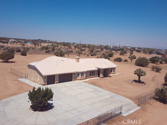 GORGEOUS CUSTOM HOME DON'T MISS OUT ON THIS DESERT OASIS!!! 4 bed 3 bath this custom home offers large spacious rooms, split floor plan, Pedestal wood burning stove with a brick hearth in living room has recessed lighting throughout home. Formal dining room flows into a large kitchen with granite counter tops, stainless steel appliances, nice island for plenty of work space, double oven, trash compactor, dishwasher walking pantry, under cabinet lighting. House vacuum throughout the house. Large den or office space, large utility room with plenty of storage cabinets. Master bedroom is large and has mirrored walk in closet with closet organizers, master bath has shower and a Jacuzzi tub, double sinks separate toilet room. The three bedrooms are roomy with mirrored closet doors and large closets that have closet organizers. Nice storage closet with plenty of shelving. Covered concrete patio area for BBQ and entertaining, home features dual air conditioners. So many extras it a must see to appreciate the beauty of this home. Built in dog run. Property is fully fenced yard with circular driveway, a 3 car garage fully finished off with a built in house vac for your convenience. Close to pavement 7/10 of a mile close to Baldy Mesa Elementary and Quail Valley Jr High School. Snowline School District