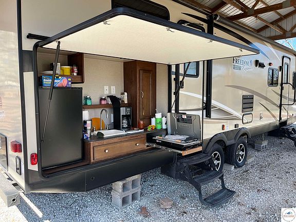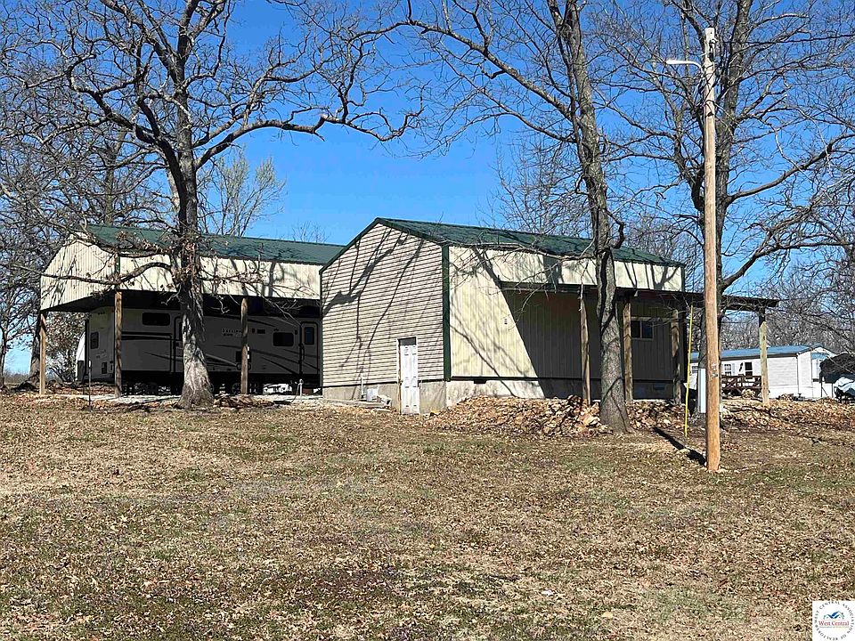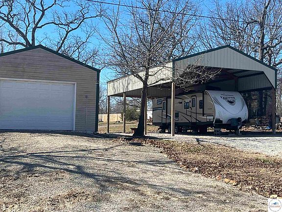Corner lot in Westwood subdivision. (1 mile from Uncle Gabby's Cabins). 20x25 Metal Outbldg w/ 10x20 lean-to. Concrete floor & electric. Built in storm shelter, 20x40 open pole barn that currently houses 2017-Coachman Freedom Express Liberty Edition Double Slide Camper Model #310BHDSLF (included in sale). Pole Barn connected to subdivision sewer system. Close to Long Shoal and State Park Marinas.