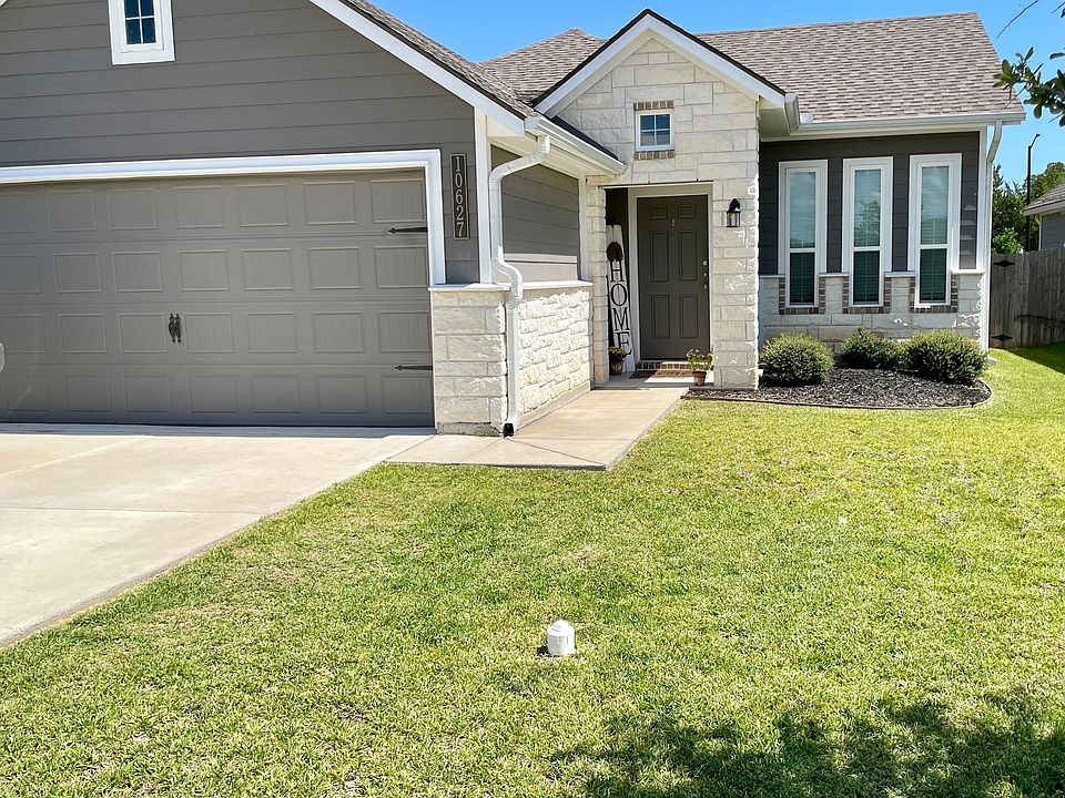 YAUPON TRAILS is a BRAND NEW Development located off of HWY 30 and Hardy Weedon Road in Bryan, Texas. The scenery in this beautiful family friendly neighborhood is just immaculate. This home is located on a nice site lot and has a large fenced in backyard as well as a sprinkler system. Inside the home features laminate hardwood flooring throughout, granite countertops, double sink vanity in master bath, separate shower / garden tub in the master bathroom, large walk-in closet in master. All appliances EXCEPT washer/dryer are included with the home! Yaupon Trails is within a few short miles of major restaurants, shopping and grocery stores!