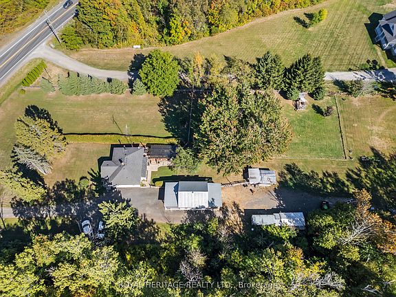 Drive up your own long private lane and step into a property that truly has it all. Over 12 acres of rolling land with winding trails, wide-open fields, and a breathtaking lookout point with panoramic views of Lake Ontario and the hills beyond. At the heart sits a charming two-bedroom bungalow with a walkout deck, hot tub, and BBQ space- the perfect spot for everyday relaxation. The home has seen meaningful updates over the years, including a renovated bathroom in 2024, central air installed in 2022 (with a 10 yr warranty), propane furnace 2017, and ongoing upgrades that provide peace of mind for the next owners. Inside, you'll also find useful touches like a pantry/office space and plenty of natural light. Step outside to a large fenced yard, ideal for pets or kids, with a generous quantity of seasoned firewood ready for use. Beyond the home, the land opens up to a pond, multiple sheds, three chicken coops, and a dog kennel, blending function with country charm. For those who dream bigger, the 24 X 24 garage/workshop is insulated, rewired, and comes with loft storage and an attached carport- a true hub for projects, cars, or hobbies of any kind. All of this is located just minutes from the 401 and close to local conveniences including the library, pharmacy, school and community arena. With ample space for parking and projects, this property offers the rare combination of privacy, space, and convenience. This property is more than just a home, its a lifestyle, an investment, and an opportunity waiting to be unlocked. Your country escape. Your future vision. All here, on 12 unforgettable acres.