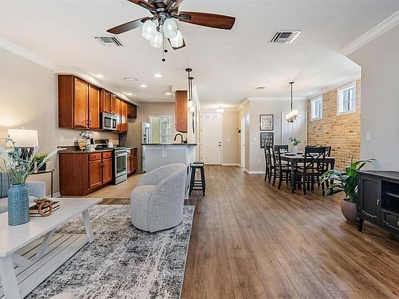 Private courtyardBreakfast barSpacious half bathroom downstairsGranite countertopsCorner lotCrown moldingStainless steel appliances