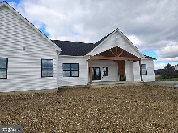Elegant Country Retreat with Mountain and Pasture Views!!! Experience refined country living in this exceptional 3-bedroom, 2.5-bath custom-built home, perfectly positioned on a level, unrestricted lot! Blending timeless craftsmanship with modern convenience, this residence offers an ideal commuter location to Virginia while maintaining the serenity of a private, rural setting. Step inside to discover spacious, light-filled interiors designed for comfort and sophistication. Every detail reflects quality construction, from the thoughtful layout to the premium finishes throughout. Enjoy sweeping mountain and pasture views from the inviting covered front and rear porches, with a stone fireplace on the rear porch creating a stunning outdoor living space. The full walk-up basement offers endless possibilities for additional living space, recreation, or storage. Whether entertaining guests or savoring peaceful evenings at home, this property combines elegance, practicality, and natural beauty in one remarkable offering. COLOR SELECTIONS projected. Siding front board and batten white on porch and gable. Garage gable is board and batten graphite and the other two gables grayish stone. Rear and sides double lap siding 5" white. White cabinets with a white/slightly veined grey quartz throughout kitchen/baths/laundry. Under cabinet lighting in the kitchen. Stone with shiplap on both fireplaces. Some kind of gray LPV throughout. Kitchen backsplash (probably will be white subway tile). Black fixtures. Farmhouse sink. Tongue & Groove ceiling on back porch. Projected completion by end of 2025..
