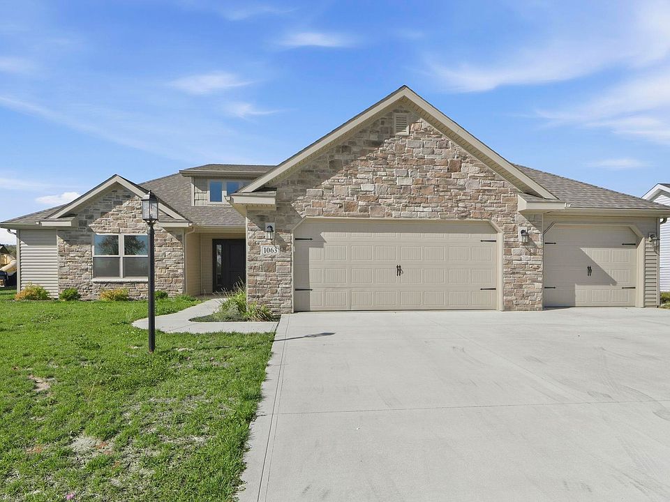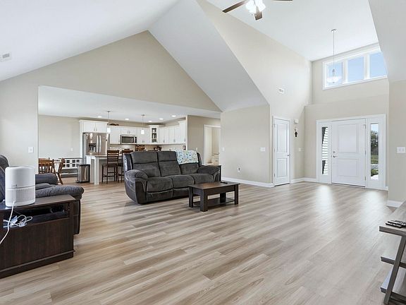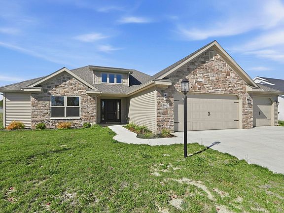 Built in 2023, this stunning 3-bedroom, 2.5-bath home offers 1,931 square feet of open and thoughtfully designed living space. From the moment you step into the beautiful foyer, you’ll notice the attention to detail and modern craftsmanship throughout. The great room features cathedral ceilings and large windows that fill the space with natural light and showcase peaceful pond views. The kitchen is perfectly equipped with all appliances included—even the washer and dryer—making this home truly move-in ready. Outside, enjoy a 3-car garage, an oversized shed for extra storage, and eye-catching stonework on the front of the home that adds to its curb appeal. Whether you’re relaxing on the patio, taking in the pond view, or entertaining guests in the spacious living areas, this home combines comfort, style, and function in one exceptional package.