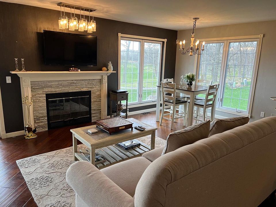 Beautiful views of the golf course from this completely renovated ranch Lakeland unit with a finished walk-out lower level, nothing more for you to do. Pride of ownership shows throughout this unit which boasts hardwood floors on main level great room, first level baths updated, 2 fireplaces and new deck on main level and walk out patio on lower level. Bonus? Yes, this unit comes completely furnished which includes kitchenware and linens. Come and enjoy the Geneva National amenities that include newer pools, walking trails, tennis courts/pickleball courts, restaurant and more.