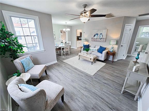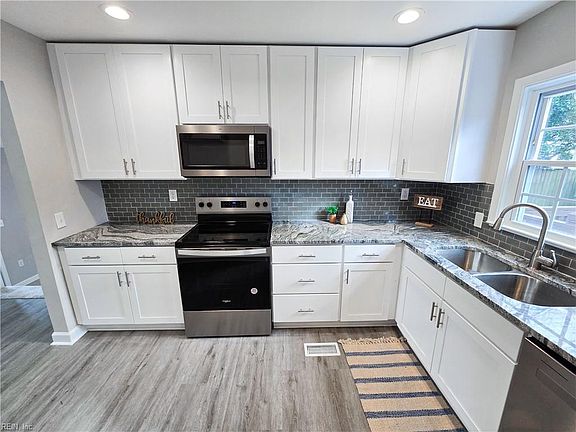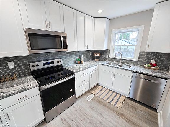Renovated 3 bedroom, 2 bathroom home in the Bayview Beach area of Norfolk. New kitchen with new soft close shaker cabinets, granite counter-tops, new stainless steel appliances, and a custom tile back-splash. Living room, dining room and a bonus room that can be used for a play room, or another living room. Second floor primary bedroom with en-suite bath. Updated bathrooms with new fixtures. Fresh paint and new plush carpet and upgraded luxury vinyl plank (LVP) flooring throughout. Newer HVAC & Water Heater. New roof. Mud room with cubbies and seat with coat rack. Large Pressure treated deck. Closed in front porch. Near Chesapeake Bay Beaches, Naval Base, and Naval Air Station. Schedule your showing today!