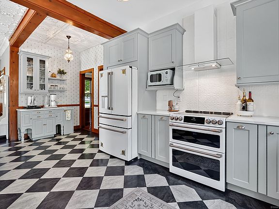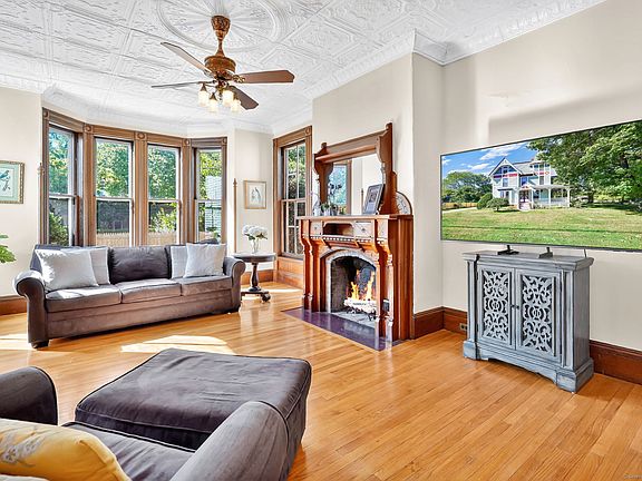 Welcome to the John P. Jones House, an iconic Queen Anne Victorian that captures the romance of another era while embracing today's comforts. This gorgeous home is rich in distinctive features such as a wraparound porch, decorative woodwork, gingerbread trim, Monson slate shingles, stained glass and intricate millwork that highlights its artistry. Inside you'll find soaring ceilings, gleaming hardwood floors and natural woodwork that showcases the craftsmanship of its day. Four original fireplaces provide warmth and charm, while period light fixtures add to its allure. Spacious yet inviting rooms flow seamlessly, blending elegance with everyday comfort. The updated custom kitchen boasts high-end appliances, a Harman pellet stove and a walk-in butler's pantry with ample storage. Renovated baths echo the same thoughtful design, offering modern touches without sacrificing character. You'll enjoy outdoor living with a screened porch, paver patio, covered lanai and nearly an acre of beautiful grounds, ideal for gardening, entertaining or quiet relaxation. A four-car carriage house adds versatility for vehicles or creative pursuits. Nestled in one of South Windsor's most desirable neighborhoods, this home offers privacy with the convenience of nearby shops and restaurants. With easy access to Hartford, Boston and New York, South Windsor delivers small-town appeal with big-city reach. This is more than a home - it's a rare opportunity to own a piece of history.