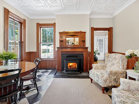 Welcome to the John P. Jones House, an iconic home that captures the romance of another era while embracing today's comforts. This gorgeous home is rich in distinctive features such as a wraparound porch, decorative woodwork, gingerbread trim, Monson slate shingles, stained glass and intricate millwork that highlights its artistry. Inside you'll find soaring ceilings, gleaming hardwood floors and natural woodwork that showcases the craftsmanship of its day. You'll also find four original fireplaces with stunning carved mantels, while period light fixtures add to its allure. Spacious yet inviting rooms flow seamlessly, blending elegance with everyday comfort. The updated custom kitchen boasts high-end Smart appliances, a Harman pellet stove and a walk-in butler's pantry with ample storage. Renovated baths echo the same thoughtful design, offering modern touches without sacrificing character. You'll enjoy outdoor living with a screened porch, paver patio, covered lanai and nearly an acre of beautiful grounds, ideal for gardening, entertaining or quiet relaxation. A four-car carriage house adds versatility for vehicles or creative pursuits. Nestled in one of South Windsor's most desirable neighborhoods, this home offers privacy with the convenience of nearby shops and restaurants. With easy access to Hartford, Boston and New York, South Windsor delivers small-town appeal with big-city reach. This is more than a home - it's a rare opportunity to own a piece of history.