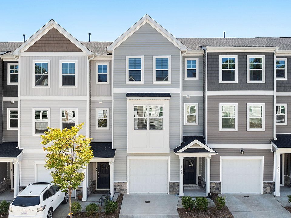 Welcome to this beautiful 3-story townhouse in Durham! This home offers a versatile layout with modern finishes and a convenient location. The open 2nd-floor plan features a spacious living room, dining area, and kitchen complete with stainless steel appliances, granite countertops, and direct access to a private outdoor deck—perfect for relaxing or entertaining. The entry-level includes a bedroom with a full bath, ideal for guests, a home office, or a workout area. Upstairs, you'll find two bedrooms, each with its own private full bathroom. The primary suite boasts a large walk-in shower, generous walk-in closet, and plenty of natural light. Refrigerator, Washer & Dryer Convey with the home. Additional highlights include a 1-car garage and access to neighborhood amenities, including a scenic lake with a pier. Centrally located with convenient access to RTP and Downtown Durham This home combines comfort, functionality, and community charm—don't miss your opportunity to make it yours!