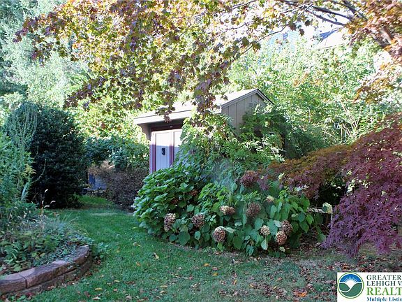 ROOMY END-UNIT BETHLEHEM TOWNHOME! Offering 3 large bedrooms, 1 ½ baths, full basement, and a beautiful and private back yard oasis. The bright and spacious living room, with built-in shelving, is open to the large dining room, also featuring built-in shelving, with elegant sliding doors to a large deck with built-in seating, surrounded by mature landscaping that offers lovely views and a tranquil sense of seclusion. Raised-bed gardens offer space to cultivate your own produce. A functional galley kitchen, with solid wood cabinets and solid surface countertops, and a modern half-bath round out the first floor. Upstairs, find a large primary bedroom, two additional spacious bedrooms, and a full tiled bath with ample storage. Full, clean basement could be finished to offer even more living space. Located in a peaceful neighborhood that is a bit tucked away, but also very conveniently located – close to shopping, dining, all major routes, and just 10 minutes from Historic Bethlehem. Schedule your private showing today, and you could be home for the holidays in Christmas City!