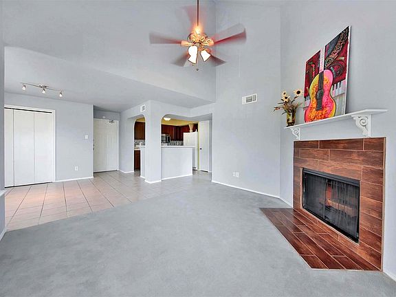 Lovely 2 bedroom, 2 bathroom condo! This gated community is located next to a retirement community and backs up to an open lot for maximum privacy. The condo is loaded with functional and architectural features such as a beautiful open floor plan, cathedral ceilings in the living room, easy to clean tile floors, and a wood burning fireplace. Beautiful arched windows to allow natural light and ceiling fans, pre-wired for alarm, onsite swimming pool and so much more. Refrigerator, stackable washer and dryer included.