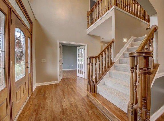 STUNNING LAKE VIEW on over half acre lot! Brick to grade 2-Story boasts a DELUXE SS kitchen w/granite, soaring 2-story Great Rm/fireplace/Wall of windows w/view to incredible backyard! 2nd Fl Ensuite, Jack N Jill, Fin LL w/full bath, custom granite wetbar, stone gas fireplace, W/O to expansive patio & huge Deck, GREAT Entertainer w/premium LOT! Oversized 2.5 car garage, 2nd fl laundry, dual HVAC!