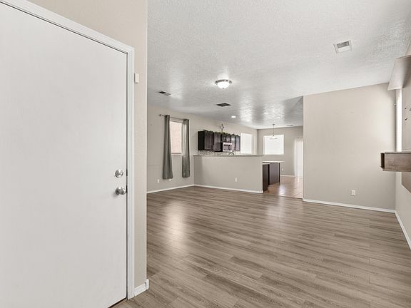 Look no further! You do not want to miss out on this well kept 3BR, 2.5BA DR Horton home. Spacious floorplan with all three bedrooms + laundry area located upstairs. Kitchen features recessed lighting, island w/bar seating, dark tone cabinetry, granite countertops, decorative backsplash, and stainless steel appliances. Equipped with ceiling fans in two of the three bedrooms. Master bedroom has laminate flooring, and a large walk-in closet. Glass sliding door opens to a large backyard, with an open patio, and fire pit. Come see this move in ready home today!
