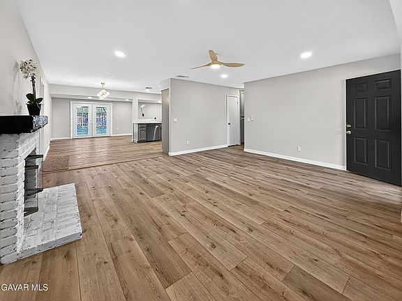 As you step inside, you'll be greeted by two spacious living areas and a cozy den complete with a fireplace. The brand-new kitchen featuring sleek cabinetry, quartz countertops, stainless steel appliances, and plenty of storage for all your family's needs. LED recessed lighting brightens each room, crafting a warm and uplifting atmosphere throughout.