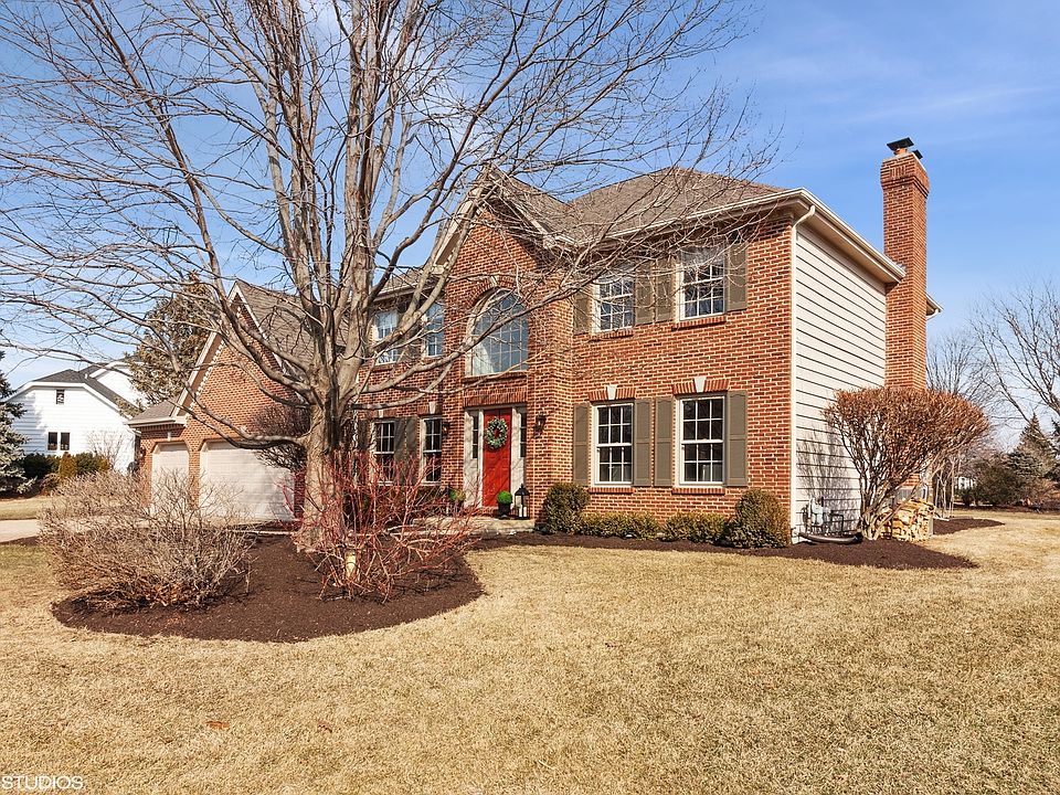 Here is a lovely Whispering Lakes Home on a .7 acre level lot...all freshened up and ready to move in and enjoy! This brick front home was built and well maintained by the current owner. Work from home in the private office-den with vaulted ceiling and skylight. Dining room with crown molding, chair rail, new carpet and chandelier. Main level laundry room with approx 5 year new full sized, front load washer and dryer, full length closet and exterior access to back yard. The kitchen includes an eating area with ceiling fan, loads of solid oak cabinetry with separate area for planning desk and pantry, double-sided stainless-steel sink, new lighting, LG stainless steel appliances and ceramic tile floor. New exterior door leading from eating area to brick paver patio. The family room has a floor to ceiling wood burning fireplace with gas starter, new carpet along with wood and glass French doors leading to the formal living room with new carpet and crown molding. All other bedrooms are spacious and include ceiling fans and new carpet. The hall bath is 10 x 10 with a volume ceiling, skylight, linen closet and double sinks with new faucets. Roof new in 2020. New hot water heater. HVAC approximately 10 years new. New carpet throughout along with fresh paint throughout most of the home. Exterior freshly painted in 2021. Kendall Elementary School 1 mile close. Crone Middle School 2 miles close. Neuqua Valley High School 2.3 miles close. Loads of shopping and restaurants slightly north on 59 Hwy.