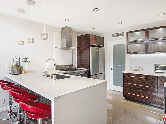 Beautiful remodeled home in the most desirable neighborhood of Westwood. Nestled on a quiet, tree lined street and perfectly situated between Century City, the Wilshire Corridor, and many of the best shops & restaurants. This chic & sophisticated 2 bed, 2.5 bath, plus loft residence offers a generous open floor plan, high ceilings, expansive windows, and is light-filled throughout. The well-appointed kitchen offers quartz counters, custom Italian cabinetry, & top of the line appliances. An impressive master expands the lower level w/ hardwood floors, walk in closet option & additional built ins. Features in-unit washer/dryer, fireplace, spacious 2nd bedroom, large upstairs loft, & private rooftop sundeck. All of this in a well-maintained architectural building of only 5 units in prime Westwood!