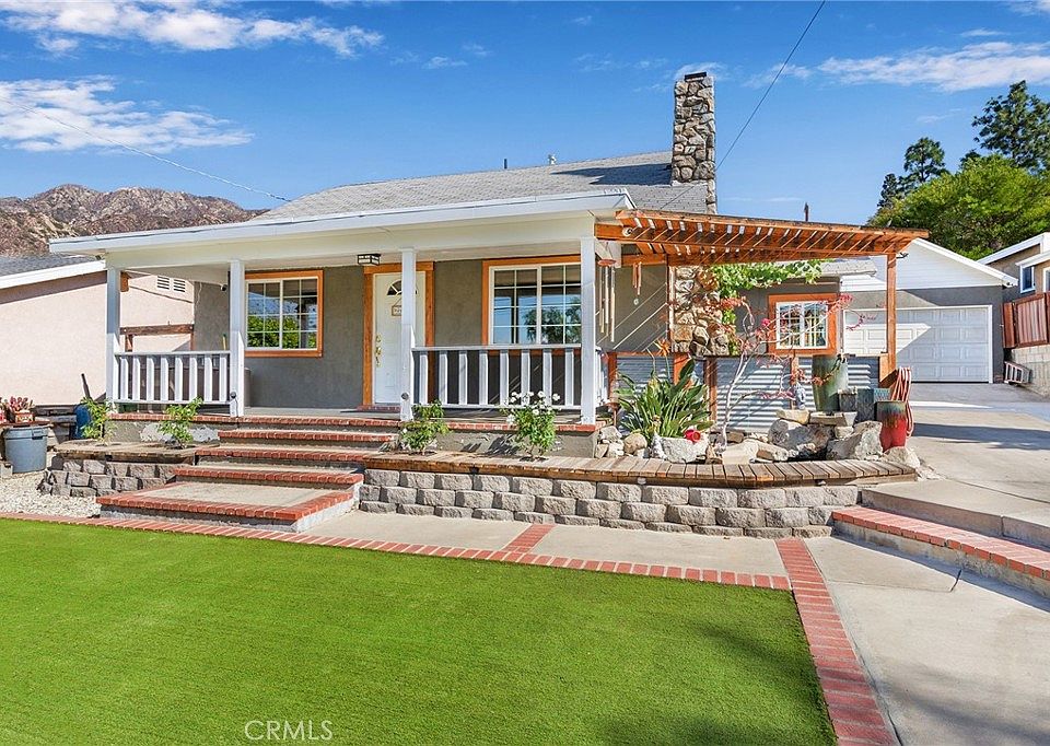 Welcome to this tranquil home nestled in the hills of Tujunga that offers great curb appeal. Featuring 3 bedrooms, 2 bathrooms, and 1,167 Sq. Ft of living space! Upon entering the long driveway, you’ll notice the low maintenance front yard with artificial turf, a Koi pond and a cozy front porch where you can enjoy nightly sunsets. As you enter through the front door into the living room, you are greeted with beamed ceilings, wood flooring, and a cozy fireplace with wood and stone accents offering a perfect space to cozy up next to on those cold nights. Adjacent to the living room is the kitchen which features concrete counter tops, tile flooring, stainless steel appliances, farmhouse style sink and plenty of cabinets for storage. There is also a breakfast nook with a built-in bench and table for dining. Behind the kitchen is a mud room which provides access to the back yard/detached garage. Down the hall you will find 2 secondary bedrooms, 2 hallway bathrooms and the primary bedroom. One of the hallway bathrooms has been updated with a quartz countertop vanity, subway tile & stacked stone accents in the shower/tub combo, and tile flooring. Step outside to your low-maintenance Entertainer’s backyard showcasing an outdoor kitchen area with smoker, a firepit area and a large shed for added storage. There are also hookups for an outdoor spa. This home is perfect for entertaining! Welcome Home!
