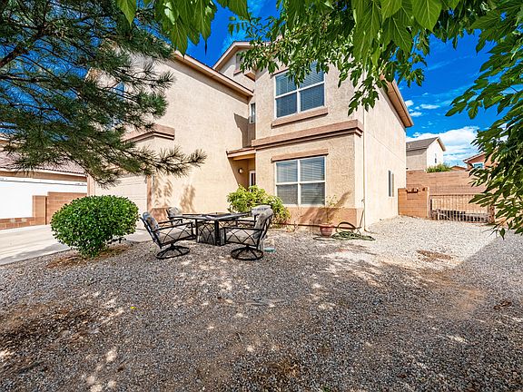 Welcome to your next home sweet home! This stunning property boasts a generous layout with four cozy bedrooms. Step into an inviting open floor plan perfect for hosting gatherings or simply enjoying everyday life.Looking for a breath of fresh air? Just across the street, a picturesque park offers scenic walking trails, a vibrant playground, and ample green spaces that promise endless outdoor fun and relaxation. Chill out during those hot Albuquerque summers with the comfort of refrigerated air throughout the house. Entertaining is a breeze with the big backyard, featuring a covered porch that's ideal for backyard barbecues. The property's prime location puts you within easy reach of shopping and dinning nearby. Ready to make it yours? Come see why this home is where your heart should be