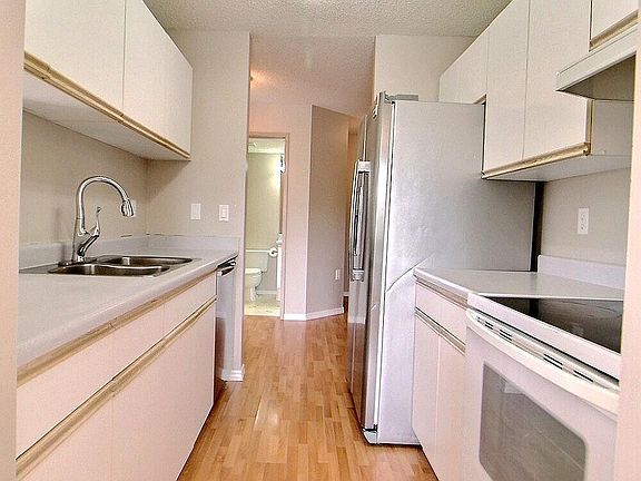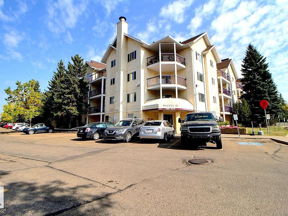 Great opportunity to own in The Pointe Downtown! This spacious 2-bedroom, 2-bathroom unit offers over 1,000 sqft and 1 covered parking stall. One of the largest units in the complex with FRESH PAINT, NEWER BOSCH DISHWASHER & NEW WINDOWS. Convenient for all local amenities and Grant MacEwan. Gally Kitchen open is open to the dinning space living room. Patio doors leading to a nicely sized South/West facing balcony. The private Primary suite offers a walk-through closet which leads to a 4-piece ensuite. The second bedroom is located on the other side of the unit along with the main 4 piece bathroom and in suite laundry/storage room. This is an ideal unit for the first time buyer or investor. all measurements are approximate and should be confirmed by purchaser. Floor area from condo plan. Conveniently located near Oliver Square, Safeway, shopping, restaurants, Grant MacEwan University and Rogers Place plus easy access to public transportation. This complex is well maintained and offers plenty