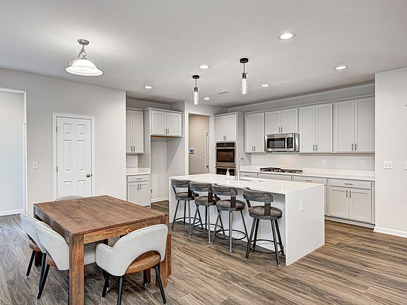 Welcome to this stunning 5-Bedroom Home with Custom Upgrades & Serene Backyard Views! This beautifully upgraded 2-story home offers 5 spacious bedrooms, 3 full bathrooms, and a generous 3-car garage. The heart of the home is an expansive open-concept living area featuring an expanded great room, and a striking upgraded stone fireplace. The chef's kitchen is a true showstopper with a farmhouse-style sink, waterfall quartz countertops, upgraded gas cooktop, and sleek stainless steel appliances. Mealtimes are a breeze with the attached dining area, and the adjacent morning room. The morning room includes motorized blinds and views of the park and walking trail, and is ideal for relaxing or entertaining. The main floor also features a private guest suite with a full bath, perfect for visitors or multigenerational living. Off the guest entry, you're greeted by a versatile office or flex room-perfect for remote work or a quiet retreat. Upstairs, you'll find the large loft, primary suite, three additional bedrooms, a well-appointed hall bath, and a convenient laundry room. The luxurious primary suite includes a tray ceiling, en-suite bathroom, and a walk-in closet with premium Dakota Closet Systems for both beauty and function. The nursery, laundry room, and mudroom/butler's pantry are also equipped with custom Dakota systems for stylish organization. Additional highlights include new ceiling fans, upgraded pendant lighting in the kitchen, and blinds installed throughout-including motorized blinds in the morning room, stairwell, and primary bedroom. Situated on a lot that backs up to mature trees, a scenic walking trail, and a tranquil park area, this home blends comfort, convenience, and natural beauty. All located just minutes from shopping, dining, and more! Don't miss your chance to own this thoughtfully designed, move-in ready home with high-end upgrades throughout!