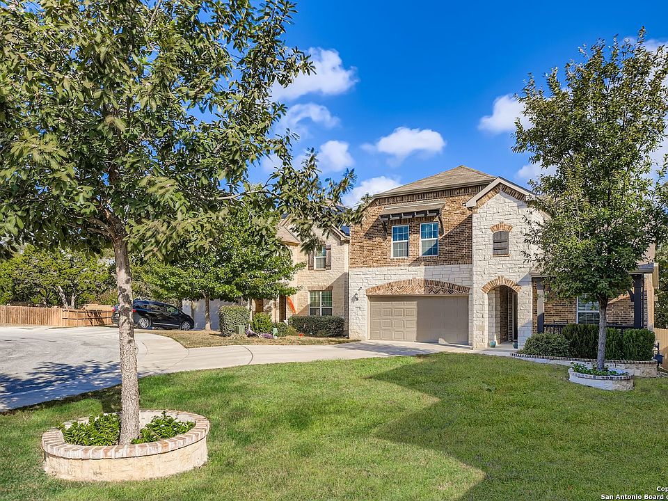 This home offers the kind of space that transforms how you actually live. From the welcoming front porch, you're drawn into an open floor plan where natural light seems to pour from every angle, creating rooms that feel connected yet distinct. The main living area centers around a generous family room anchored by a corner fireplace - a natural gathering point that provides both warmth and visual interest without feeling forced or staged. The kitchen and dining area flow seamlessly together, with windows bathing the space in daylight. Stainless steel appliances and granite counters suggest someone thought about durability and maintenance, while the island kitchen layout means you're never isolated from household activity. The dining room's abundance of natural light makes everyday meals feel less routine and special occasions feel distinct. Beyond the main living spaces, you'll find a study and gameroom that allows everyone to pursue their own interests without retreating to a bedroom. Four bedrooms and two and a half bathrooms mean the home scales with your needs - everyone has space that feels theirs, and morning routines happen without the usual bottlenecks. The outdoor living area transforms the backyard into an extension of the home. The covered patio provides comfortable shelter for year-round entertaining, while the inground heated pool eliminates the temperature excuse for staying inside during cooler months. A separate firepit creates another gathering zone, perfect for conversations that stretch into the evening. Privacy fencing encloses the entire space, establishing clear boundaries between your world and the neighbors'. Location matters here. Lantana Oaks delivers the kind of residential stability and school quality that shapes childhood - the Northside ISD distinction means education is genuinely competitive. Positioned on a quiet cul-de-sac, the home sits in one of those neighborhoods where neighbors know one another. The energy-efficient construction and water softener reveal practical choices that compound into meaningful savings year after year. Built across 2,835 square feet, this home reflects thoughtful proportions rather than unnecessary sprawl. Every room earns its place. There's substance here - real functionality wrapped in a layout that makes daily living genuinely better.