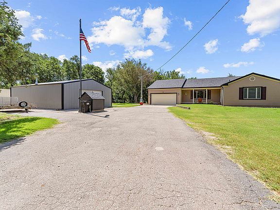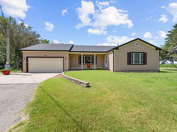 Country living without all the work! The location is less than 10 miles from Salina on a private lot in South East of Saline school district. The house is impeccably well-maintained with lots of extras and high-end updates. The open floor plan concept has 4 bedrooms, 3 bathrooms, 2 car attached garage. An impressive 30' x 45' building for all the toys would make a great man cave or she shack. Shop has been completely remodeled with addition of a wood stove, spray foam insulation, 220 outlets, 80 gallon air compressor and an insulated over-sized overhead door. The property is surrounded by mature trees and is located less than a mile off of black top road. Call for your private showing today!