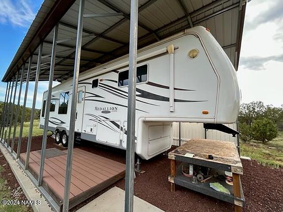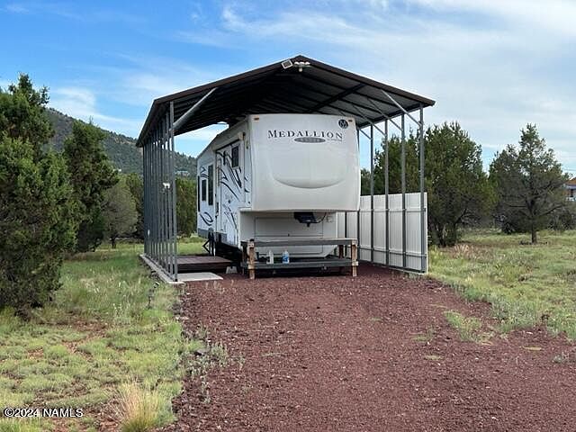 The property also includes a sheltered space for an RV, where the sellers have stored their 8 by 36-foot fifth wheel trailer for several years. *** MORE *** This well-maintained motor home can be included in the sale for an additional $15,000, providing a ready-to-move-in option for those eager to start their new life in this tranquil setting.