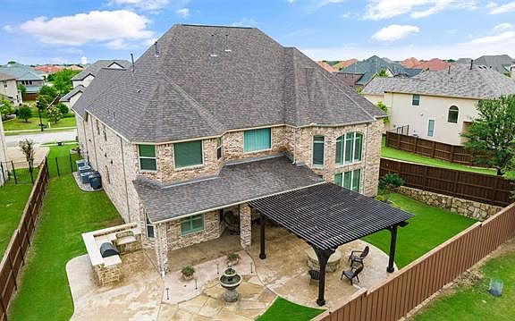 Absolutely stunning home in Saddleridge with oversized backyard including firepit, BI kitchen with grill.Located next to greenbelt. Loaded with upgrades: handscraped hardwood floors,updated lighting, plant shutters.This is your dream kitchen:huge island,gas cooking,tons of cabinets,double ovens & wine bar.Two story family room with built-ins and austin stone fireplace to the ceiling.Large master w sitting area.Don't miss the bathroom! Center jacuzzi tub with two sided seamless glass shower & dual shower heads.Two vanities,large wi closet.Upstairs are spacious bdrms,large gmerm & media with built in plus snack bar. Upgraded iron front door.OVERSIZED 3 car garage! See list of improvements attached.