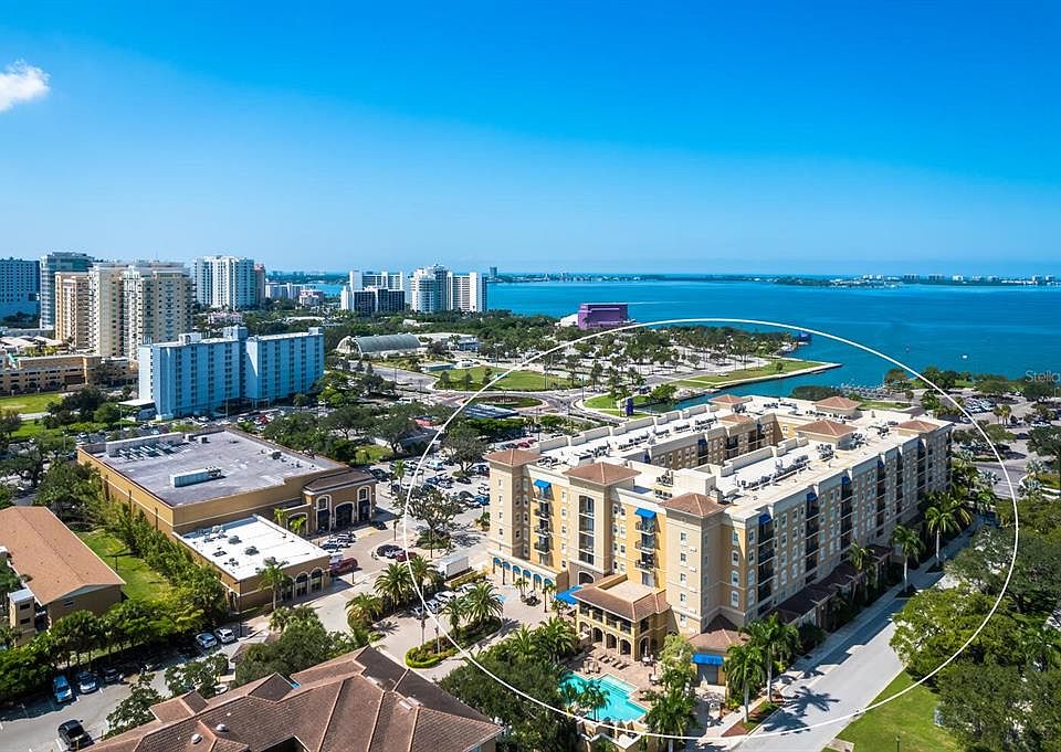 Welcome to refined downtown living at an exceptional value. Exquisitely renovated three-bedroom, two-bath corner residence; elevated finishes, sophisticated comfort & remarkable privacy, only one neighbor. Enter through the private courtyard & experience the home's sense of calm & understated luxury. Located on the coveted first floor, you will find soaring eleven-foot ceilings, effortless living with no need for elevators, a blend of warm wood & ceramic tile flooring, complemented by elegant shutters throughout. Gourmet kitchen with quartz countertops, soft-close cabinetry, updated appliances, abundant storage. Enhanced soundproofing between bedrooms creates a serene environment. Primary suite is a true retreat, featuring an oversized custom closet crafted with high-end built-ins, a spa-like bath with dual sinks & an impressively large shower. Two parking spaces & two rare, separate storage units are included. Furniture is negotiable. Complex offers abundant amenities, including a 24-hour concierge, library, billiards room, fitness center, saunas, a heated pool and spa, outdoor dining areas, & guest suites. Pet-friendly. Close to Publix, cafes, dining & steps from The Bay, the city's vibrant waterfront park for outdoor events & cultural gatherings. Experience the elegance, convenience, and sophistication of downtown Sarasota living without the downtown price tag.