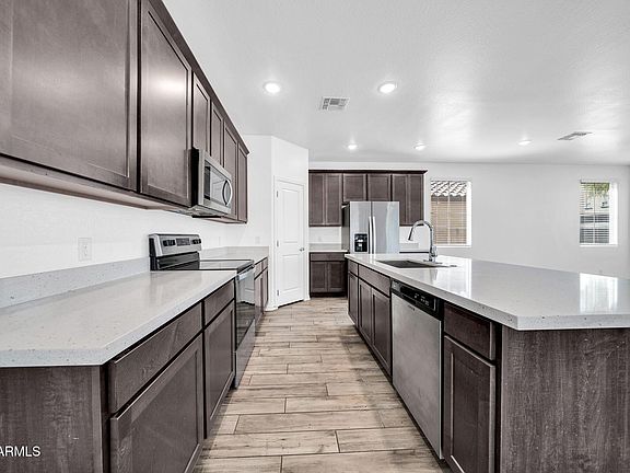 Upstairs, you'll find generously sized bedrooms and a comfortable primary suite offering a relaxing retreat. Outside, enjoy a low maintenance backyard complete with artificial grass, ideal for outdoor dining or play. The home is situated in a desirable community with access to a sparkling community pool and is within walking distance to the Goodyear Recreation.
