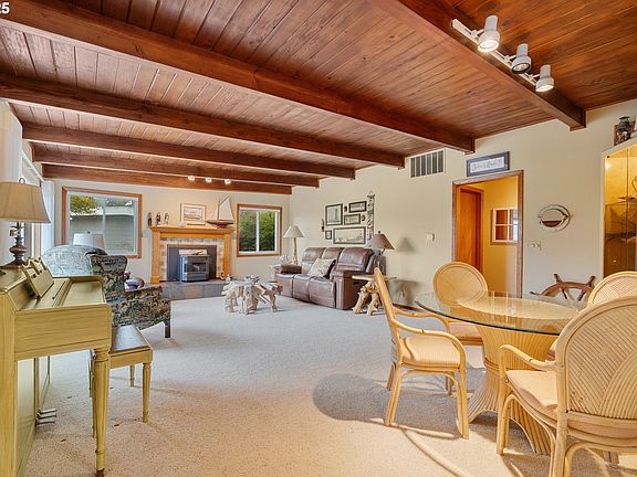 Beautifully appointed mid-century modern home with old school elegance & a two story addition (@ 1990) giving you over 3100 square feet of living area. Tongue & groove open beam ceilings, pellet stove, five bedrooms, three bathrooms, formal living room and a large game room (includes pool table) PLUS a large additional entertainment room with a lake view. Only @ two blocks to the beach. Room for boat or RV. Quality hickory kitchen cabinets and top quality cedar decking. Private back patio. Many options - Primary residence, secondary home, or possible duplex conversion. Insta hot appliance in kitchen! Recently painted. Large lot with room for a shop or accessory building. Easy to show. PRICED BELOW MARKET VALUE.