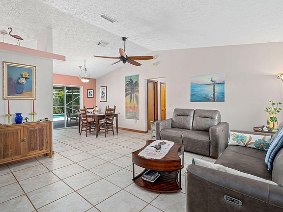 Welcome to your dream oasis! This stunning split floor plan home boasts 3 bedrooms and 2 bathrooms, including a convenient cabana bath for poolside ease. With 4 access points to the screened-in pool and patio adorned with a fantastic outdoor kitchen, entertaining is effortless. Your stunning main kitchen features stainless steel appliances, custom cabinets, Corian countertops, and windows opening to the patio and stylish outdoor bar, making indoor-outdoor living a breeze. The metal roof ensures durability, while new duct work and blown insulation ensures energy efficiency and comfort year-round. Centrally located to I-95, the Florida Turnpike, shopping, and Tradition Square! Welcome home!