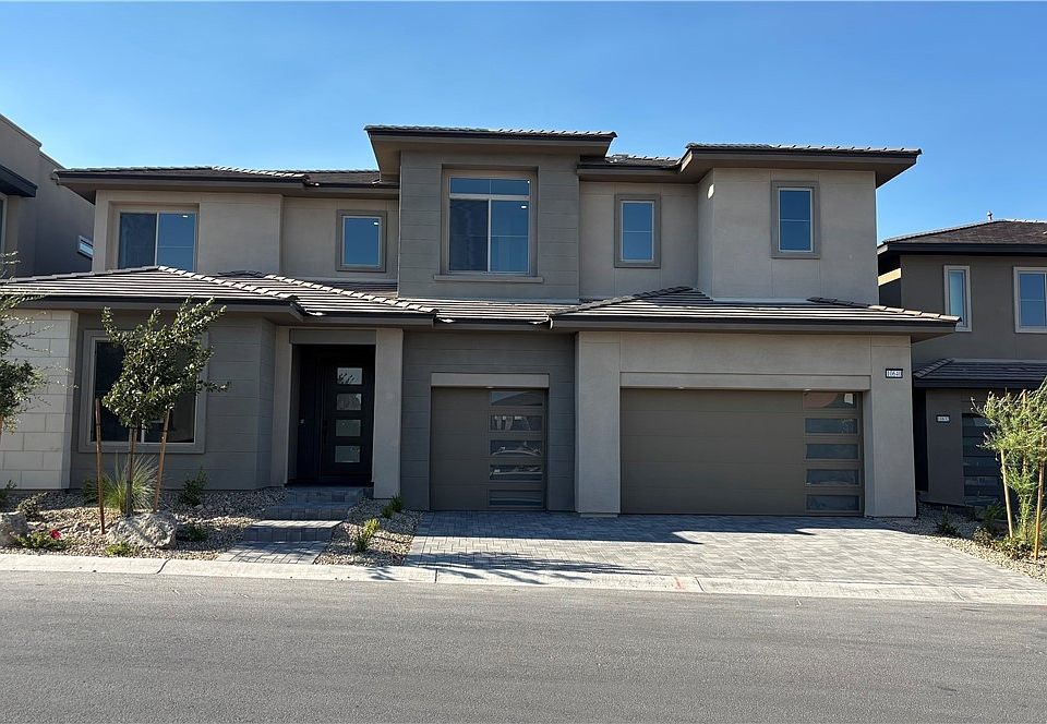 BRAND NEW CONSTRUCTION ASCENSION CAPROCK, Welcome to this magnificent, fully furnished new home at the newest, upsacale guard-gated neighborhood in Summerlin. With more than $600K in high-end enhancements, every element has been carefully chosen to improve your quality of life while fusing comfort and sophisticated contemporary design! Step inside to see a large, open-concept layout w/ high ceilings. Clalcatta divine beautiful countertops with water fall edges, a full-height backsplash, a large wet bar island with wall fall edges & built in refrigerator, premium SKS Pro stainless steel appliances, & a walk-in pantry are all features of the gourmet kitchen. Prep kitchen with sink and dishwasher. A separate casual cafe allow for easy entertaining. The great room features a four-panel sliding glass door that seamlessly integrates indoor and outdoor living spaces. Floating stairs lead to the massive gaming area, which is ideal for family movie nights or entertaining on the private terrace