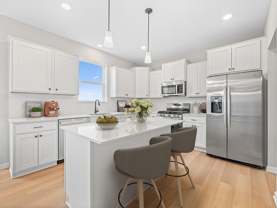 The Dearborn F is a stunning 3-bedroom, 2.5-bathroom home in St Michael, MN. This new construction home offers a modern and inviting space perfect for families and individuals alike. As you step inside, you'll be greeted by an open floorplan that seamlessly connects the living and dining areas, creating a warm and welcoming environment for gatherings and daily living. The spacious kitchen features a center island, providing ample workspace and storage for all your culinary needs. The home boasts an owner's bedroom and en-suite bathroom, complete with a dual-sink vanity, ensuring convenience and privacy for the homeowners. Located in a peaceful and friendly neighborhood, you'll enjoy a sense of community while still having easy access to nearby amenities and major roadways for commuting. Whether you're looking to relax in the tranquility of your backyard or explore the nearby parks and recreation areas, this house offers outdoor opportunities for everyone.