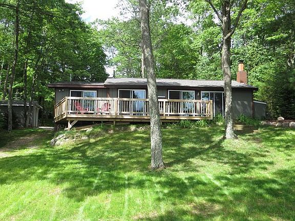 The Ultimate Northwoods Cottage, totally remodeled 2017 and ready for action! This could be your perfect getaway or used as a rental income property as well. Sellers have done absolutely everything inside and out, transforming into a trendy, comfy year-round cottage with southern exposure and sand shoreline, plus relaxing views across the water to state forest. New interior includes, wood-grain tile, hickory cabinets, backsplash, all new appliances, interior 6 panel doors, drywall, ceiling fans, all new bathrooms w/tile, 4 new sliding doors leading out to lakeside deck, stackable laundry, new gas log fieldstone fireplace and more. Outside you'll find fresh paint and a new roof, professional landscaping, walkways, new lawn, new driveway, new pier, transplanted pines for privacy plus new lakeside fire pit. Mann Lake shoreline is 90% state forest. Easy access to paved bike trails, and snowmobile trail nearby, public boat launch right down the street. Reserve your showing time today!