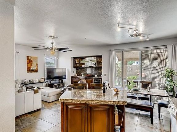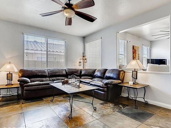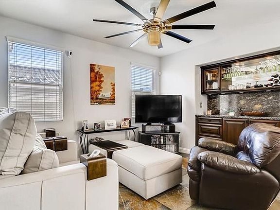 Rent the dream in beautiful Summerlin! This home has been highly upgraded with granite countertops, with a remodeled chef's eat-in kitchen with the newer appliance. The living area has a built-in bar area with a wine fridge. These unique floor slate tiles & wooden flooring are throughout this home, with modern ceiling fans! With 3 bedrooms, 1 primary bedroom with a spacious romantic bathroom and a walk-in closet, 3 remodeled bathrooms, an office, and 3 car garages with one of the garage sides having a room built in which makes it a 2 car garage. You'll also be able to enjoy a very private, landscaped backyard as well, ideal for entering. It is close to school, shopping and 215, etc. This home is MOVE-IN ready! Hurry this won't last, Call me today to see it.