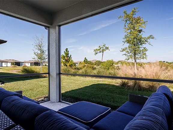 Why wait to build when this 2023, move-in ready home already offers preserve views and completed upgrades? Built by Pulte Homes, this 2-bedroom, 2-bath villa with a den features 1,542 square feet of thoughtfully designed living in the 55+ community of Del Webb at Bayview. Backing to a wooded preserve, the home provides a rare sense of privacy with peaceful nature views. With the community now built out, there are no remaining opportunities to build new within Del Webb at Bayview, making this a limited opportunity to enjoy one of North Manatee County’s most established active adult communities. Luxury vinyl plank flooring flows throughout the main living areas, creating a cohesive, low-maintenance interior. The kitchen is well-appointed for both everyday living and entertaining, featuring stainless steel appliances, quartz countertops, a glass tile backsplash, and ample prep space. Sliding glass doors open to the rear lanai, complete with a power retractable sunshade for added comfort during sunny afternoons. The flexible den is currently used as a home office and offers versatility for a hobby room, media space, or guest accommodations. The primary suite easily fits a king-size bedroom set and includes a walk-in shower with glass enclosure, subway tile, built-in bench seating, and a dual-sink vanity. Both bathrooms and the interior laundry room are finished with ceramic tile flooring. Outdoor living is highlighted by the rear lanai with wide-view screens that preserve uninterrupted views of the wooded backdrop—an ideal space to enjoy quiet mornings and evening sunsets. An attached two-car garage adds everyday convenience. Del Webb at Bayview offers a maintenance-free, amenity-rich lifestyle with a full-time Lifestyle Director, resort-style pool, fitness center, tennis and pickleball courts, on-site dining, and a full calendar of social activities. Conveniently located along the Moccasin Wallow corridor with quick access to I-75, Tampa, St. Petersburg, and Sarasota, and close to new shopping, dining, hospitals, and the upcoming Seaire Crystal Lagoon. An excellent opportunity to enjoy newer construction and resort-style living in a growing area.