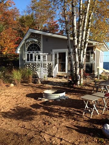 Back on the market at a new price! Be sure to check out this very special, remodeled getaway cottage on Lake Superior's Whitefish Bay. The lake is right outside your door! Many custom details, including a lakeside screened porch, make this a one-of-a-kind property. Open-concept living area with tongue and groove paneling, pellet stove, custom propane wall fireplace w/custom stone work and porcelain wood tile (heated) flooring throughout. Custom-made, locally-reclaimed wood countertops. There is a small laundry room off the main bedroom and a sleeping loft for kids/storage. Bathroom includes a custom-tiled shower, a wall fireplace and custom-crafted cement vanity top. The lakefront features an extensive stone seawall to protect from erosion. Large shipping container for storage included!