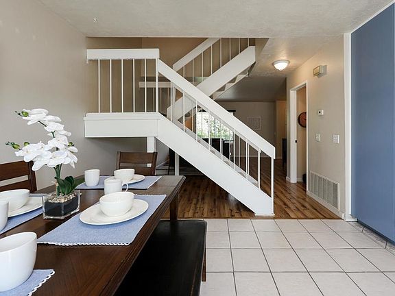 Welcome home to this beautiful, well-maintained 3 bedroom,1.5 bath townhouse located in one of Santee’s most desirable and well-kept communities. This lovely home features dual pane windows, forced a/c and heat, custom paint and an abundance of natural light throughout. The charming, bright, kitchen is equipped with newer upgraded appliances and opens into the dining area, creating a nice inviting space for everyday living. The first floor also includes a spacious living room, half bath, and indoor laundry area. Upstairs you will find all three bedrooms, including the large primary with a walk-in closet and direct access to the updated full bath. Out back, you will find two assigned parking spaces conveniently located directly behind the unit-one is a covered carport with ample built-in storage-both lead into a private, fully fenced patio with direct access to the kitchen. The complex is beautifully landscaped with lush, manicured grounds, a pool, playground, and greenbelt. It is centrally located near parks, schools and shopping, yet offers a quiet tranquil environment with picturesque mountain views.